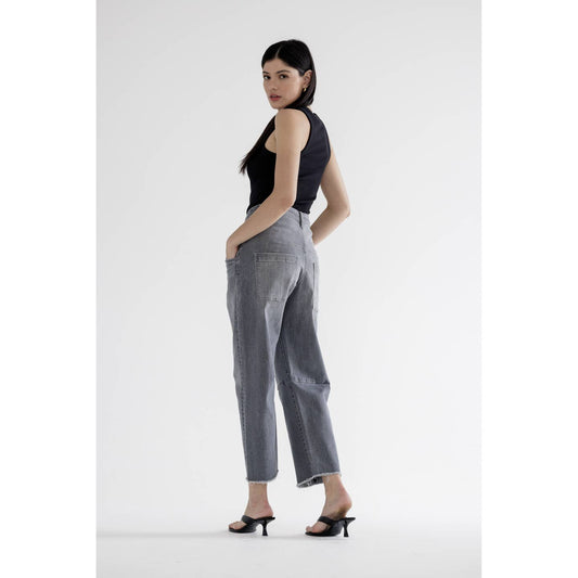 High Waist Barrel Leg Pure Gray