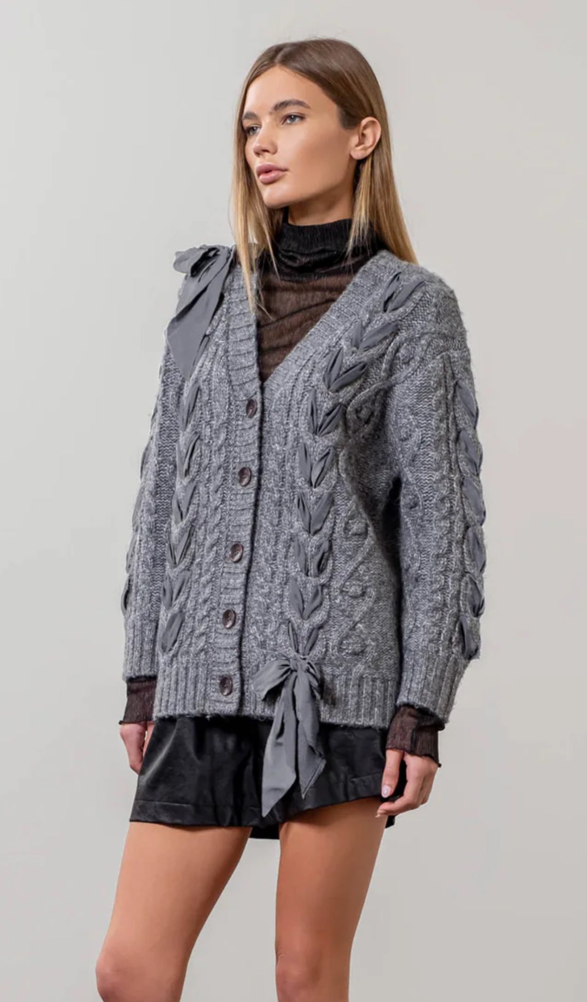 Our Ribbon Bow Cardigan is effortlessly feminine and thoughtfully designed. The delicate ribbon detail adds a touch of charm, making it equally suited for cozy mornings or evenings out with friends. It's versatile silhouette pairs beautifully with tailored trousers, denim, or a feminine skirt or dress, bringing timeless elegance to your everyday style.