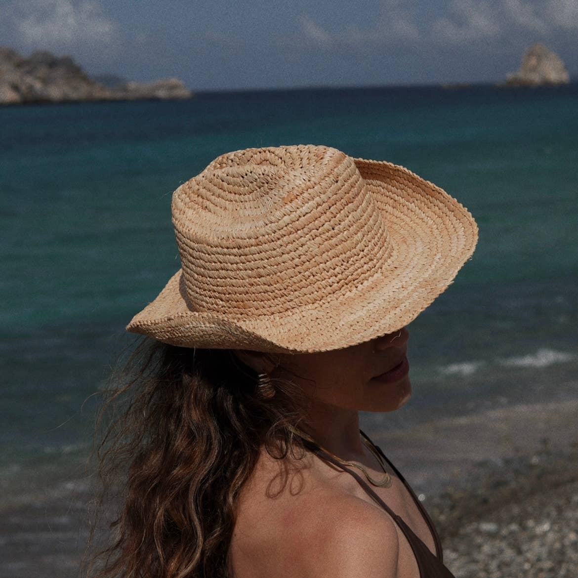 Made for golden hour rides and slow days in the sun. The Milly is a modern take on the classic cowboy silhouette, handwoven from natural raffia for a lightweight feel and timeless look.
